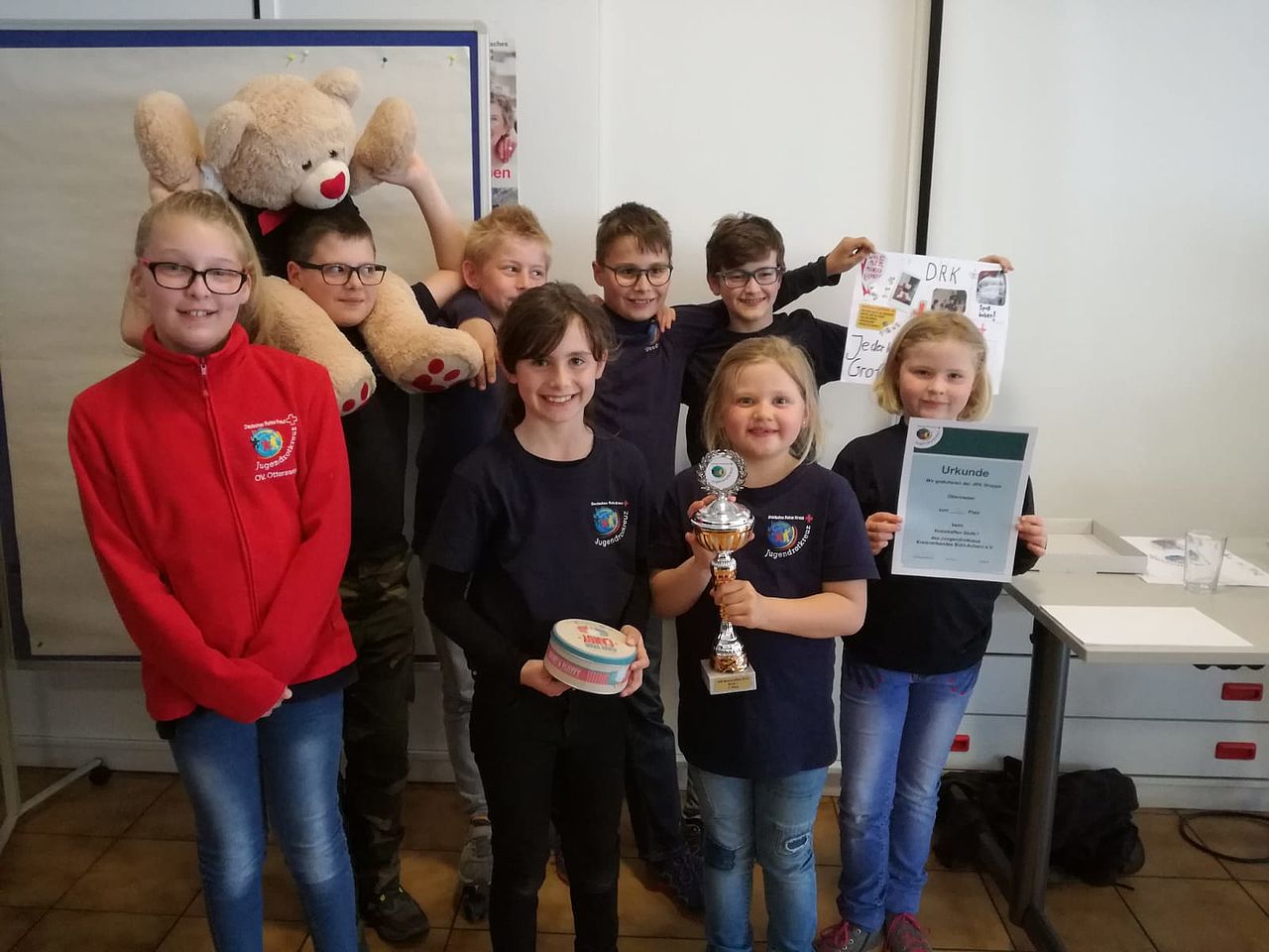 Leben retten kann Spaß machen? Das hat nun das JRK des Ortsvereins Ottersweier am 04.05.2019 im DRK Kreisverband Bühl-Achern unter Beweis gestellt. Die acht Kinder und Jugendlichen mit ihren Betreuerinnen und Betreuer zeigten ihr Können an unterschiedlichen Stationen. Mit viel Engagement, aber auch mit sehr viel Spaß und Freude, ergatterten die jungen Ersthelfer den 2. Platz des JRK Kreiswettbewerbs Sekundarstufe 1.